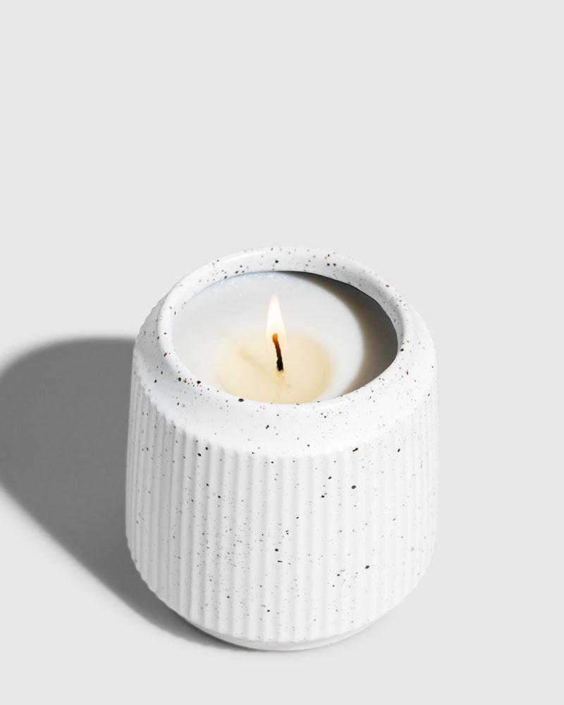 Cozy up your space with an artfully-crafted ceramic candle. Hand-poured with 100% soy wax and ready to be repurposed once its burning days are over.