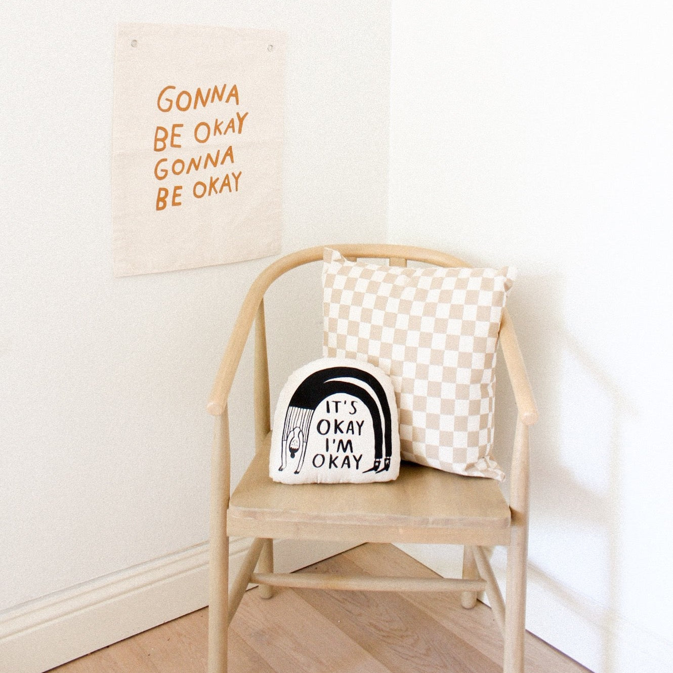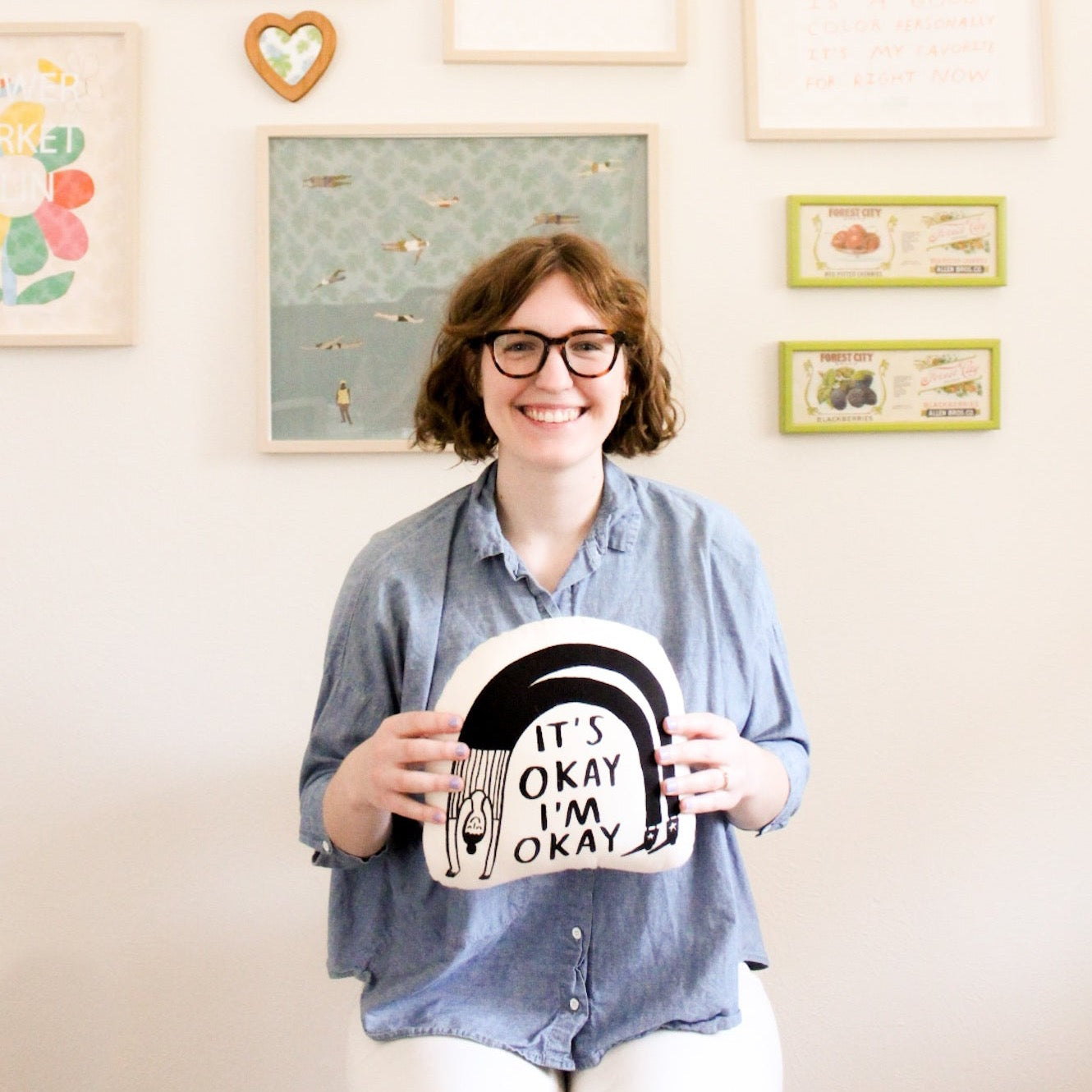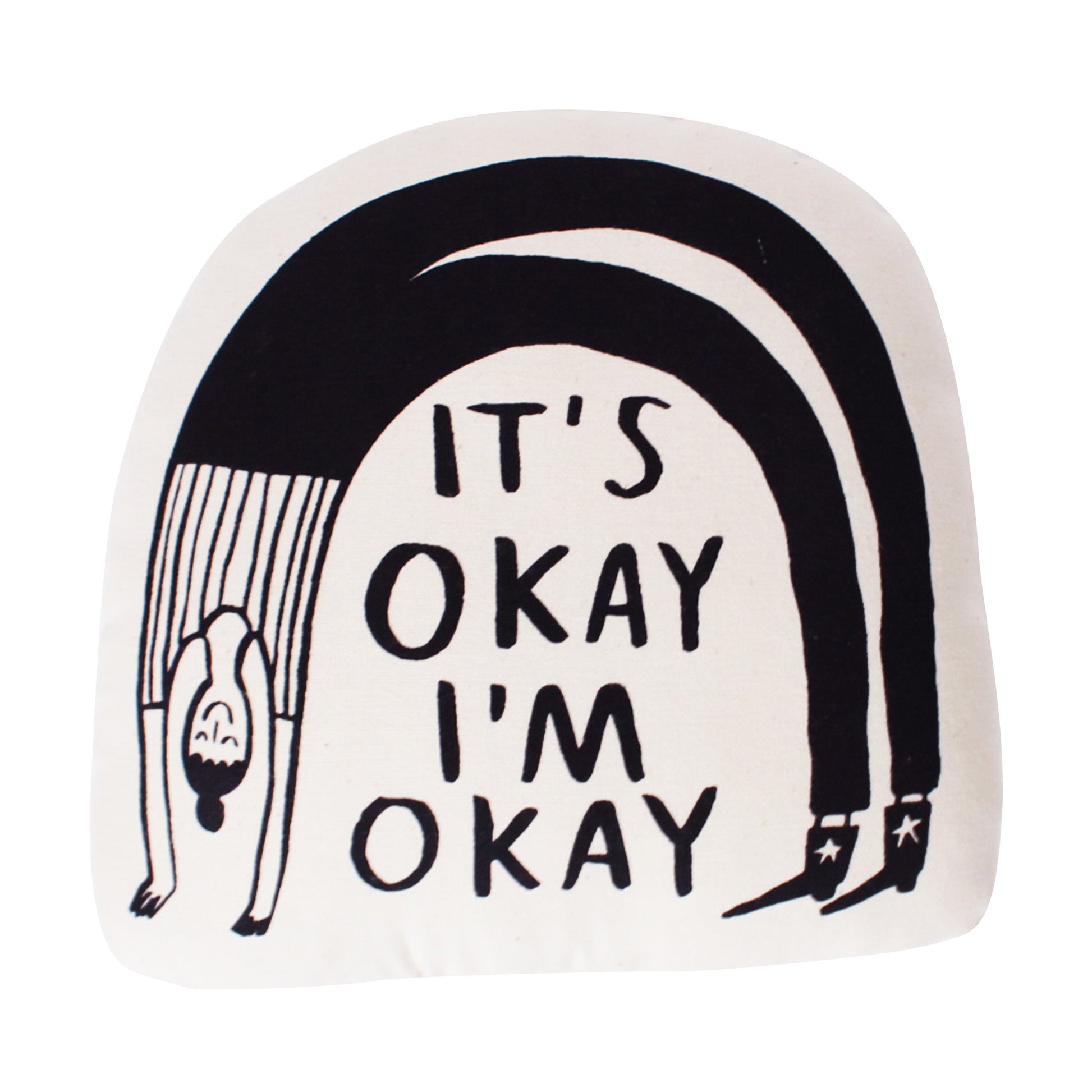 "it's okay i'm okay" Original Design on canvas pillow made by empowered Kenyan artisans in collaboration with artist Kristen Peers